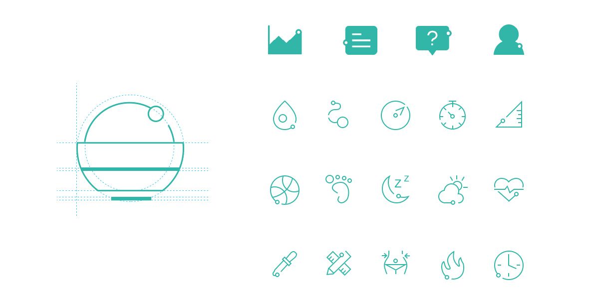 ICON设计上采用(yòng)极简的線(xiàn)性图标,線(xiàn)与圆代表图表特征上的線(xiàn)和数据点,选中(zhōng)的图标使用(yòng)明亮的绿色,与線(xiàn)性的图标形成强烈的对比。